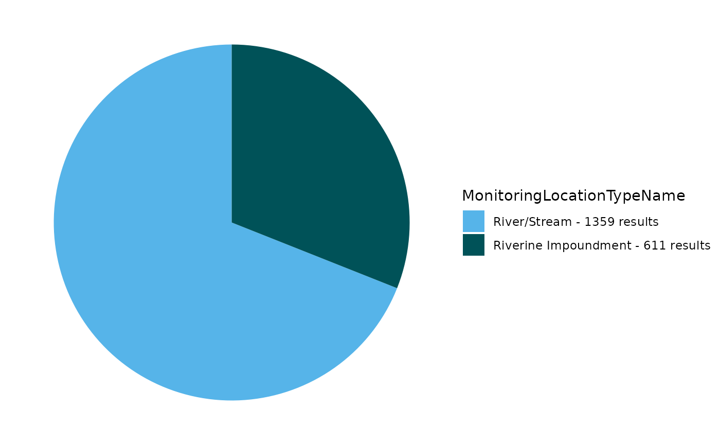 To start, let’s find Penobscot Nation water monitoring data that was submitted to EPA’s Water Quality eXchange. We are interested in Class B waters only. In this example, we already have a list of the Monitoring Location Identifiers that represent Class B waters. We can use this list of locations to query the WQP. In addition, we are interested in E. Coli data and can specify that in the characteristicName filter.