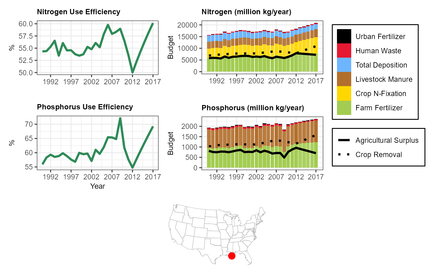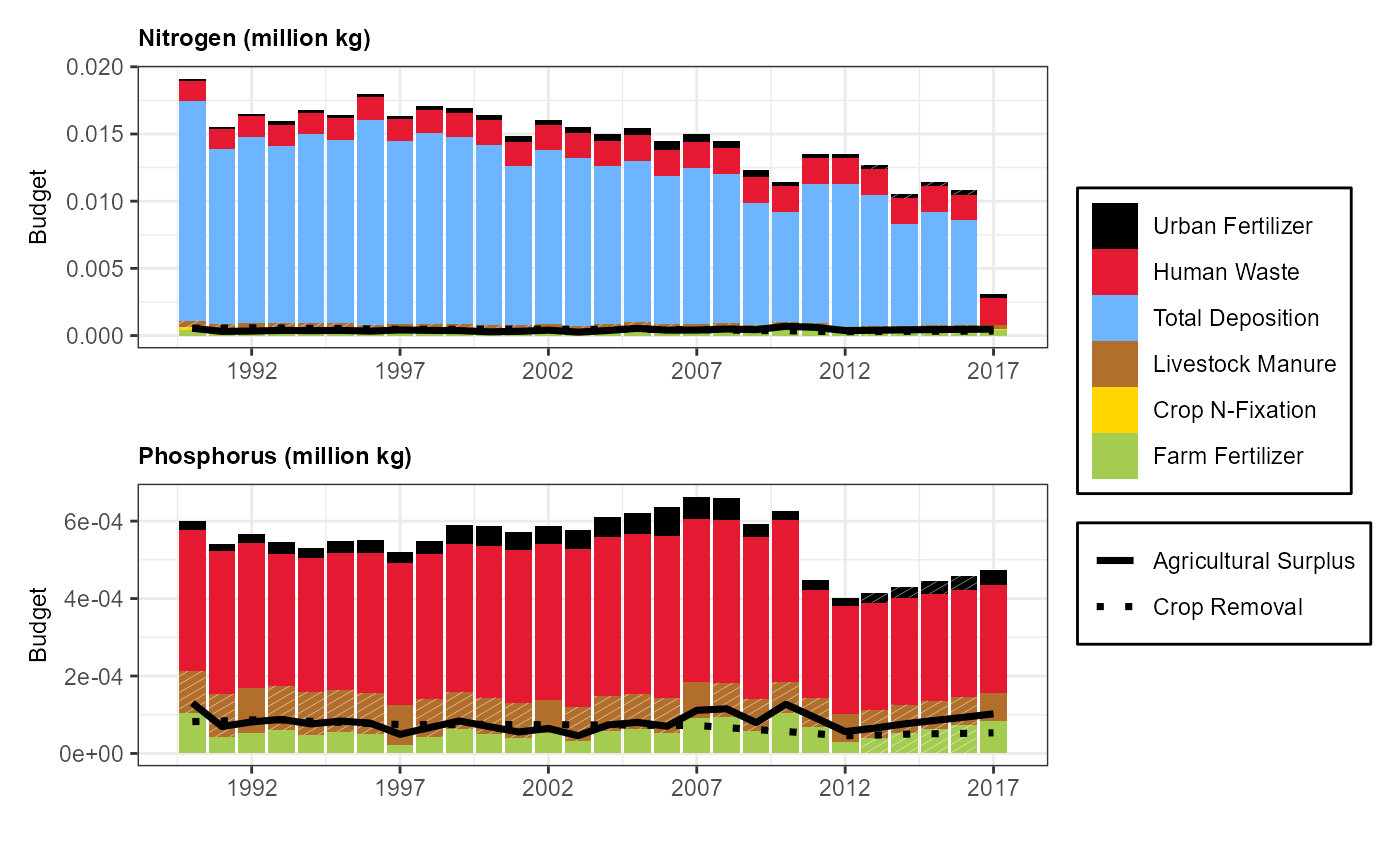 #> 6 Atmos. Deposition -31.7 NALocal catchment and watershed N and P inputs to the Platte River Basin